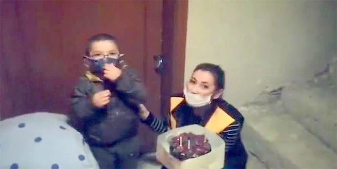 Minik çocuğun mutlu anları paylaşılarak Süleymanpaşa Belediyesin sosyal medya hesaplarından yapılan açıklamada, ?Salgın tedbirleri kapsamında oğlundan uzakta olan annesinin talebi üzerine, Süleymanpaşa?mızda, anneannesinin yanında yaşayan Cihan kardeşimize doğum günü sürprizi yaptık. Sosyal İşler Müdürlüğü personelimizin aracılığıyla, annesi adına kendisine ulaştırdığımız pastayla yeni yaşını kutladığımız Cihan?ın ve ailesinin mutluluğunu paylaştık. Nice yeni mutlu yılların olsun Cihan! İyi ki doğdun? denildi.