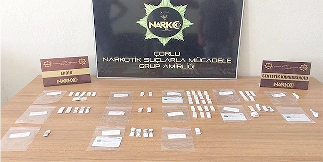 Çorlu İlçe Emniyet Müdürlüğü Narkotik Suçlarla Mücadele Grup Amirliği ekiplerince uyuşturucu madde kullanan şahıslara yönelik yapılan denetimlerde uyuşturucu madde kullandığı tespit edilen 15 şahıs üzerinde arama yapıldı. Yapılan aramalarda 49 fişek eroin maddesi, 2 fişek bonzai adı verilen sentetik kannabinoid maddesi, uyuşturucu nitelikli hap ele geçirildi. Uyuşturucu madde kullandığı tespit edilen 15 şahıs hakkında yasal işlem yapıldı.