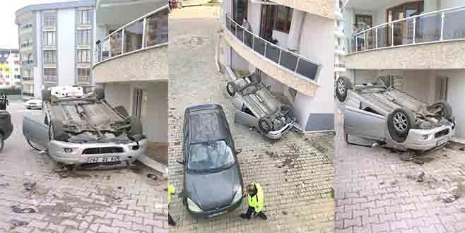 OTOMOBİL 10 METREDEN BETON ZEMİNE ÇAKILDI