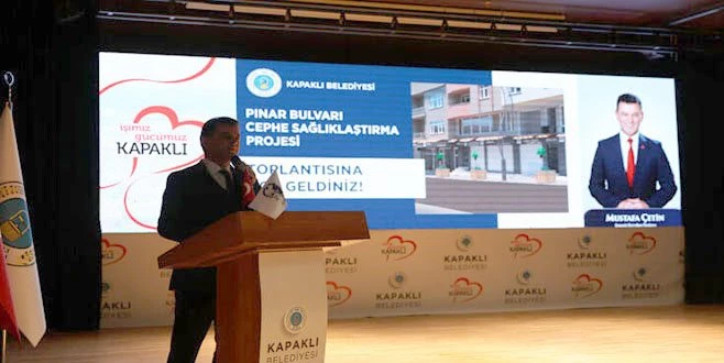 Kapaklı Atatürk Kültür Merkezi?nde düzenlenen programda Başkan Çetin, Pınar Bulvarı`ndaki bina ve dükkanların bulvara bakan ticari birimlerinin ön, yan cephe ve tabelalarının düzenlenmesi için hazırlanan Pınar Bulvarı Cephe Sağlıklaştırma Projesi?ni esnaf ile paylaşarak, görüş ve önerilerini dinledi.