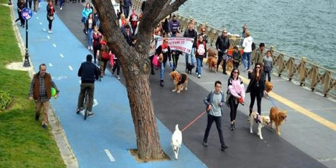Konuşmaların ardından kent meydanında hayvanlarla birlikte yürüyüş başladı. Hayvanseverler sahildeki yürüyüşleri sırasında `Hayvana kalkan eller kırılsın`, `Hayvan ölümlerine son` şeklinde pankartlar taşıyıp sloganlar attı.