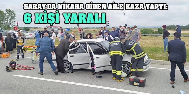 Kaza, Saray ilçesi çevreyolu yolu üzeri Büyükyoncalı Mahallesi kavşağında meydana geldi. Alınan bilgiye göre, Büyükyoncalı Mahallesi`nden Saray istikametine gitmekte olan Rasim S. idaresindeki 33 ACK 369 plakalı otomobille, Saray?dan Çerkezköy istikametine seyreden Kenan A. idaresindeki 59 J 4052 plakalı servis minibüsü Büyükyoncalı Kavşağında çarpıştı. Meydana gelen kazada otomobilde bulunan aynı aileden otomobil sürücüsü Rasim S., Kemal S., Zeynep S., Aysima S., Rukiye S. ve İlyas S. araçta sıkıştı. Olay yerine çok sayıda itfaiye, jandarma ve ambulans sevk edilirken, yaralılar itfaiye ve sağlık ekiplerinin uzun uğraşları sonucu sıkıştıkları yerden çıkarılarak Çerkezköy ve Saray Devlet Hastanelerine kaldırıldı. Kazanın ardından tek şeritten sağlanan trafik akışı kazaya karışan araçların olay yerinden kaldırılmasıyla normale döndü.