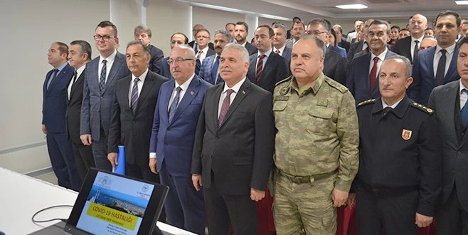 Tekirdağ Valiliğinde düzenlenen korona virüsü bilgilendirme toplantısına Tekirdağ Valisi Aziz Yıldırım, kaymakamlar, belediye başkanları, kurum müdürleri ve çok sayıda kişi katıldı. Vali Yıldırım, korona virüsün dünyanın pek çok yerinde görülmesine rağmen Türkiye?de daha yeni yeni görülmeye başlandığını ifade ederek, ?Bu da dışarı ile teması bulunan kişiler aracılığı ile oldu. Onun için de tedbirler biraz daha artırıldı. Yurt dışına çıkışlarda kısıtlamalar getirildi. Bir takım büyük ve kalabalık toplantılar da ertelendi. Buna bağlı olarak bizim de ertelediğimiz toplantılar var. Korona virüsü bilgilendirme toplantısı korona yüzünden iptal edilmemeliydi. Bunu mutlaka yapmalıyız ki sizleri bilgilendirelim. İlimizde şuana kadar herhangi bir vaka tespit edilmedi, inşallah bundan sonra da olmaz? dedi.
