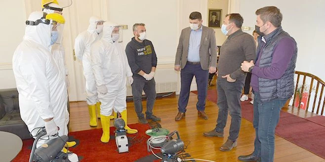 Başkan Yardımcısı Sabri Çınar, özel dezenfeksiyon ekibiyle birlikte Süleymanpaşa Belediye Başkanı Cüneyt Yüksel?e bir sunum yaparak çalışmalar hakkında bilgilendirmede bulundu. Yüksel, çalışmaları dikkatle takip ettiğini belirterek başarılı çalışmaların devamını diledi.