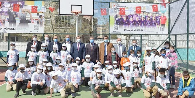Açılış töreni, protokol konuşmalarının ardından kurdele kesimi ile sona ererken, Başkan Yüksel, protokol üyeleri ve öğrencilerle birlikte çok amaçlı sahada basket bol oynadı.