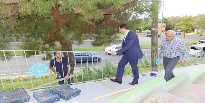 Süleymanpaşa Belediye Başkanı Cüneyt Yüksel, Çiftlikönü?nden sahile inen merdivenleri yanında kurulan, engelli vatandaşlar ve bebek arabalarının geçişine imkan sağlayan rampada incelemelerde bulundu.