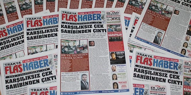 Trakya Flaş Haber Gazetesi`nin yeni sayısı, bugün çıktı. Her zamanki gibi cuma günü çıkan yeni sayımızın manşeti, ilginç bir çek olayı...