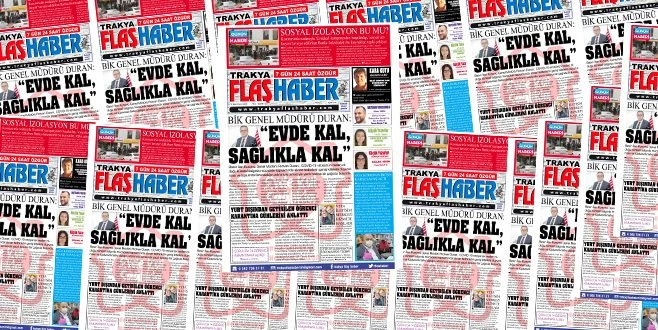 Trakya Flaş Haber Gazetesi`nin yeni sayısı, bugün çıktı. Her zamanki gibi cuma günü yayımlanan yeni sayımızın bu haftaki manşeti, Koronavirüs mücadelesi ve Basın İlan Kurumu (BİK) Genel Müdürü Rıdvan Duran`ın `evde kal` çağrısı.