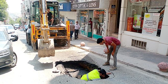 Taksi durağında oturan bir vatandaş, yoldan bir aracın geçtikten sonra su patlamasının meydana geldiğini ve ardından yolda çökme meydana geldiğini ifade etti.