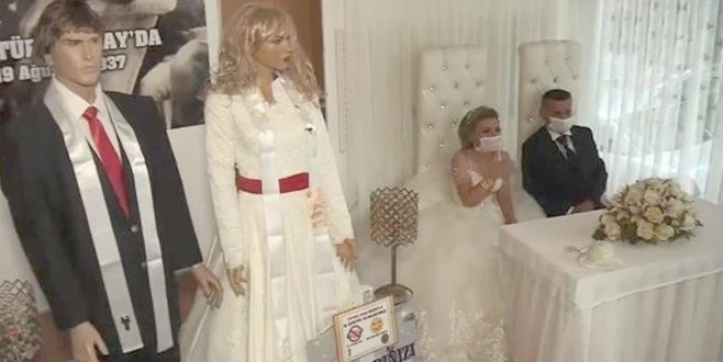 Çin?de ortaya çıktıktan sonra tüm dünyayı saran korona virüs belası nedeniyle uygulanan sıkı tedbirlerin ardından vaka sayılarının düşmesiyle Türkiye genelinde normalleşme sürecine gidildi. Normalleşme süreciyle birlikte tekrar düğünlerin başlamasıyla Tekirdağ?ın Saray ilçesinde bulunan bir düğün salonunda maske ve sosyal mesafe kuralları çerçevesinde Sinem ve Sinan Dağ çiftinin düğünü gerçekleşti. Düğüne gelen davetliler düğün salonuna giriş yapınca korona virüs önlemleri çerçevesinde damatlık ve gelinlik giydirilen cansız mankenleri görünce kısa bir şaşkınlık geçirdi. Salon girişinde cihaz ile ateş ölçümleri alındıktan sonra gelin ve damadı tebrik etmeye gelen davetliler, damat ve gelin adayı yerine takıları gelinlik ve damatlık giydirilen cansız mankenlere taktı.