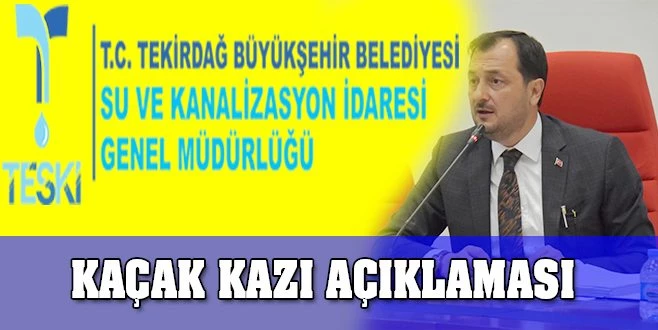 Geçtiğimiz perşembe günü Süleymanpaşa Belediye Başkanı Cüneyt Yüksel`in TESKİ (Tekirdağ Su ve Kanalizasyon İdaresi) tarafından kaçak kazı yapıldığı iddiaları üzerine uzun bir açıklama yapıldı. TESKİ Genel Müdürlüğü tarafından yapılan açıklamada şunlara yer verdi: