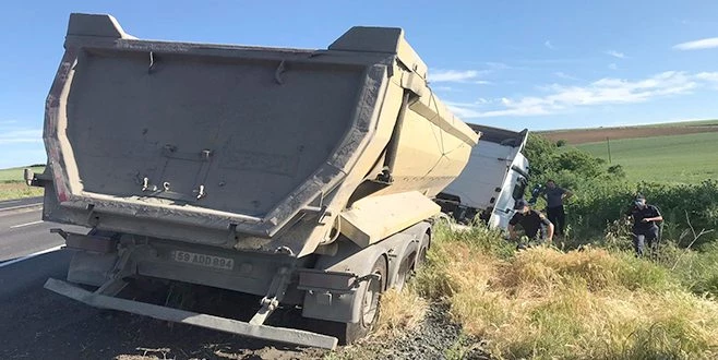 Tekirdağ`ın Muratlı ilçesinde seyir halindeki TIR?ın yoldan çıkması sonucu trafik kazası meydana geldi.