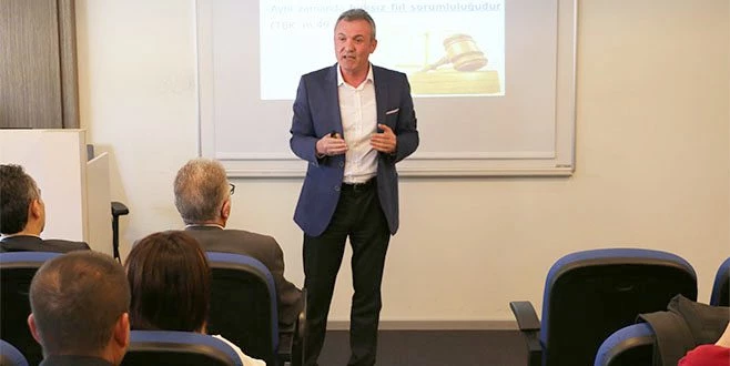 ÇSGB E. Genel Müdür Yardımcısı Lütfi İnciroğlu ve İSG Uzmanı Fatih Öksüz?ün anlatımlarıyla düzenlenen seminerde, İş Sağlığı ve Güvenliği Bakımından İşveren ve Vekillerinin Hukuki ve Cezai Sorumluluğu ile İSG ve Kalite Yönetim Sisteminin Yazılım Üzerinden Takibi konuları hakkında katılımcılara bilgilendirmede bulunuldu.