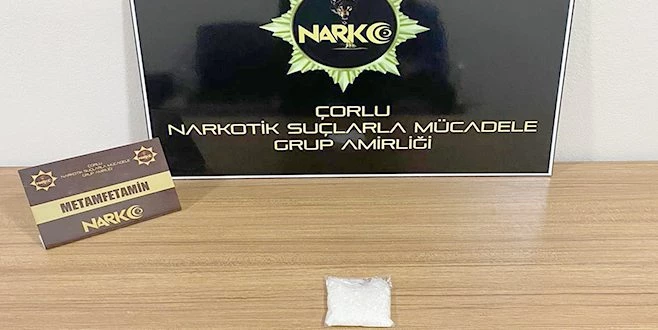 Tekirdağ İl Emniyet Müdürlüğü Narkotik Suçlarla Mücadele Şubesi Çorlu Grup Amirliği ekiplerince uyuşturucu ve uyarıcı madde ticareti yapan şahıslara yönelik yapılan çalışmalar kapsamında Çorlu İlçesinde, oluşturulan uygulama noktasında şüpheli bir araç durduruldu. Durdurulan araç ve araç içerisinde bulunan şahısların üzerinde yapılan aramada, 1 adet vakumlu poşet içerisinde daralı 46.50 gram metamfetamin maddesi, 1 adet hassas terazi ele geçirildi.