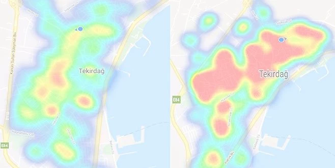 Çin`den yayılan korona virüs salgını bütün dünyaya korku salmaya devam ederken, Türkiye`de uygulanan sıkı tedbirlerin ardından Tekirdağ?ın korona virüs risk haritasında normalleşmeler görülüyor. Hayat Eve Sığar (HES) uygulaması üzerinde daha önce kırmızıya boyanan Tekirdağ`ın korona virüs risk haritası yılbaşında uygulanan 80 saatlik kısıtlama sonrasında mavi ve yeşile büründü.