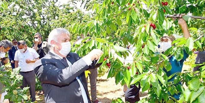 Daha sonra Vali Yıldırım ve beraberindeki heyet, Çınarlı mahallesinde kiraz hasadına katıldılar. Üreticilerle sohbet eden ve hasat yapan Vali Yıldırım, üreticilerin sorunlarını dinledikten sonra çiftçilere hasatlarının bol ve bereketli olmasını temennisinde bulundu.