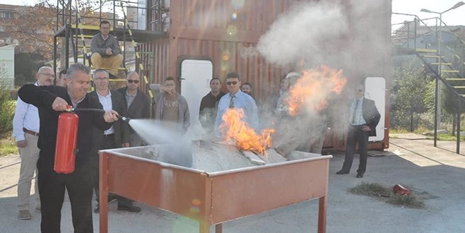 Ayrıca eğitim kapsamında, yangın tüplerinin nasıl kullanıldığı uygulamalı olarak gösterilerek personele, uygulamalı olarak yangın tüpü kullanma fırsatı verildi. Düzenlenen eğitim sonunda, katılımcı personele yönelik bir de test gerçekleştirildi.