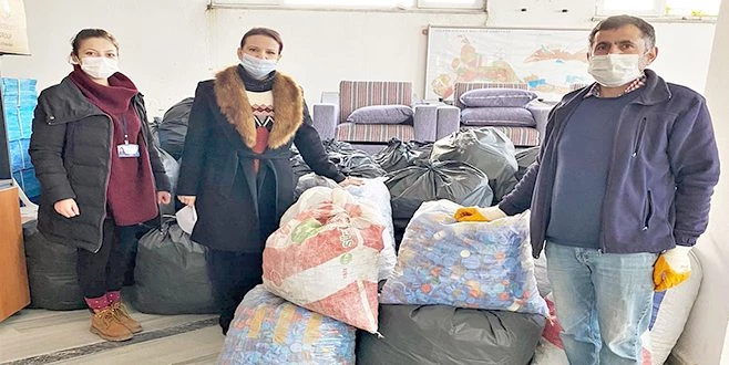 1 BUÇUK TON PLASTİK KAPAK TOPLANDI