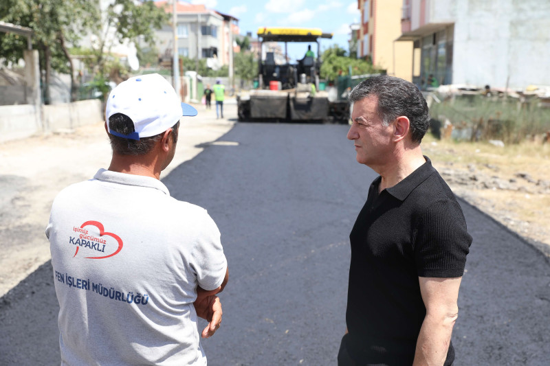 Kapaklı Belediye Başkanı Mustafa Çetin, Fen İşleri Müdürlüğü ekiplerince asfalt, beton ve kilit taş yol ile yağmur suyu hattı çalışmalarını inceleyerek ekiplerden bilgi aldı.