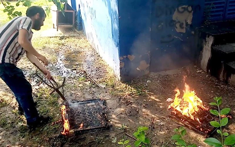 Tepkilere daha fazla dayanamayan çekçekçi, yaktığı ateşi söndürerek bölgeden uzaklaştı.