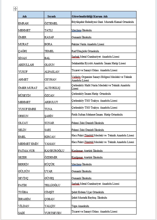 ÇERKEZKÖY’DE MİLLİ EĞİTİM’E 52 ATAMA YAPILDI