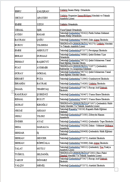 Kaymakamlık, yapılan atamaların listesini de açıkladı.