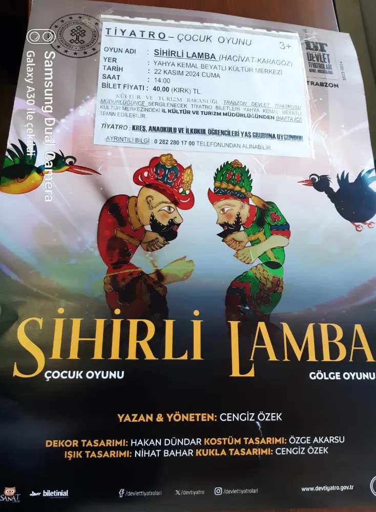 Kültür ve Turizm Bakanlığı Trabzon Devlet Tiyatrosu tarafından Tekirdağ’da Hacivat Karagöz, Sihirli Lamba oyunu sahnelenecek.