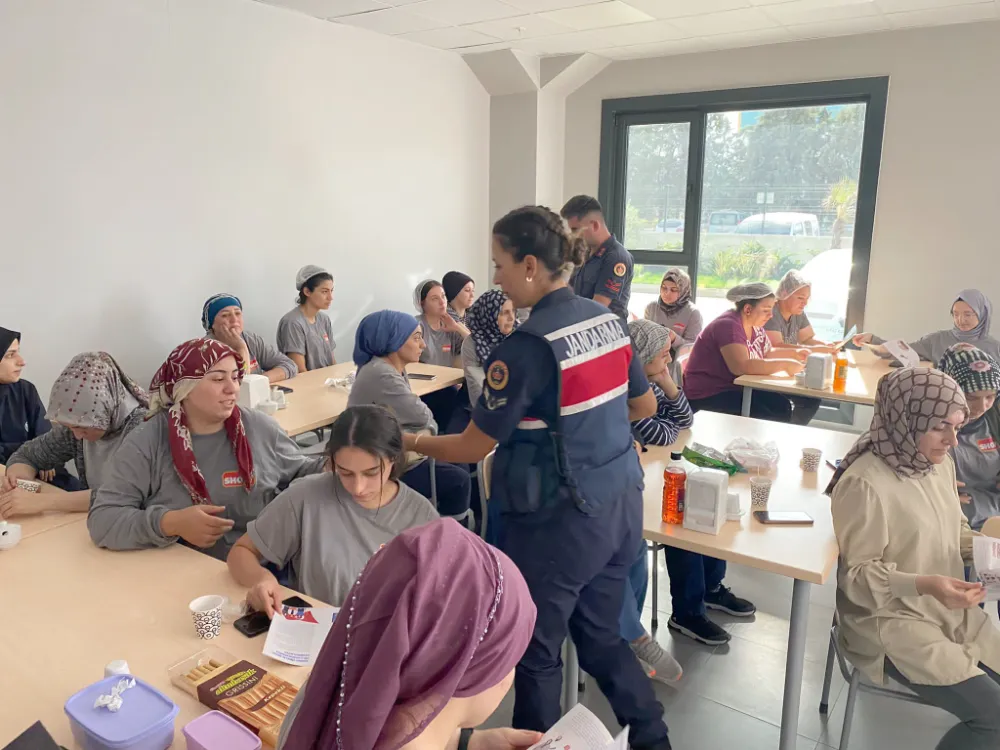 Çerkezköy İlçe Jandarma Komutanlığı personeli tarafından Kızılpınar ve Veliköy mahallelerinde faaliyetlerini sürdüren fabrikalarda çalışan kadınlara yönelik KADES (Kadın Destek Uygulaması) hakkında bilgilendirmede bulunuldu.