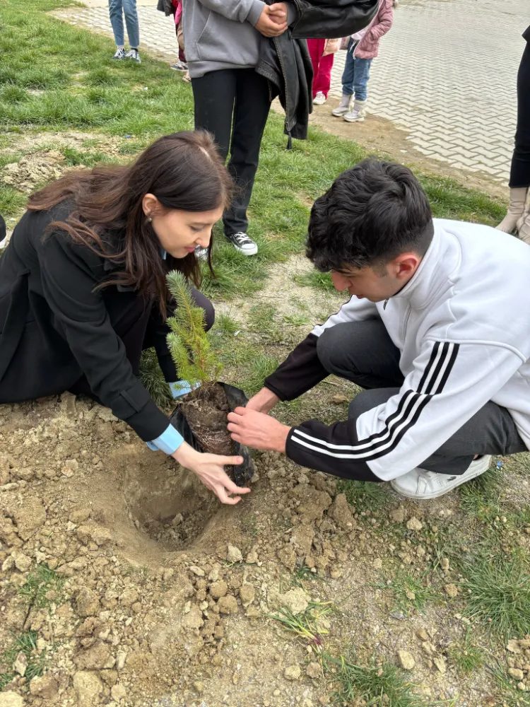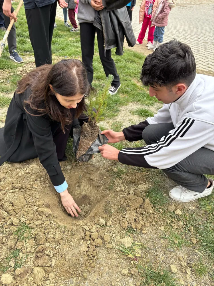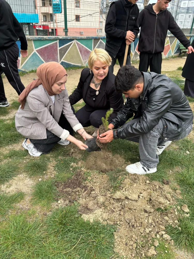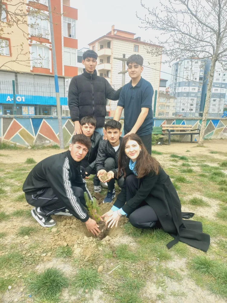 Çerkezköy Kızılpınar Çok Programlı Anadolu Lisesi öğrenci ve öğretmenleri hep birlikte okul bahçesine fidan dikti.