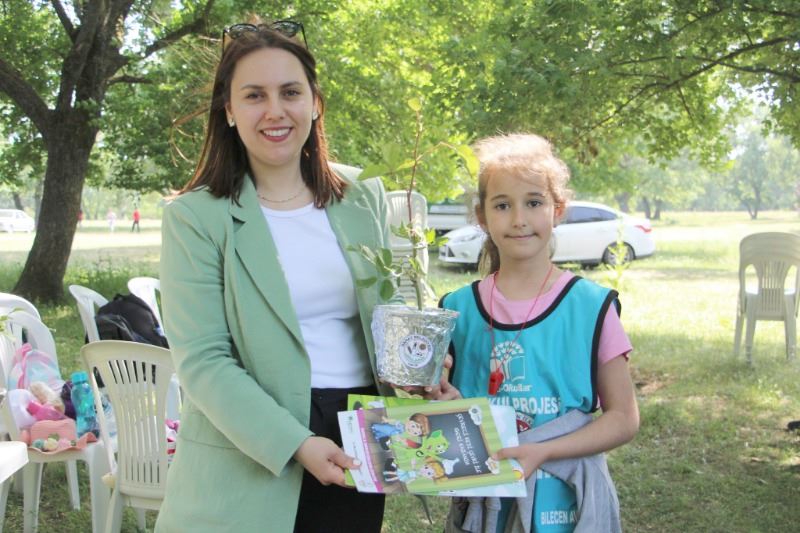 Saray Belediyesi Çevre Mühendisi Şebnem Ürkmez etkinliğe katılan öğrencilere teşekkür ederek, Saray Belediyesi seralarında yetiştirilen gül fidelerini ve çevre konulu kitapları onlara hediye etti.