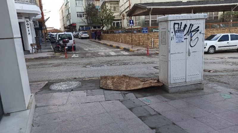 Yere düşmeyen parça için ihbar üzerine olay yerine itfaiye ekipleri sevk edildi. Çevrede önlem alarak, ardından çatıya çıkan ekipler, yerinden oynayan çatı parçalarını aşağıya indirdi.