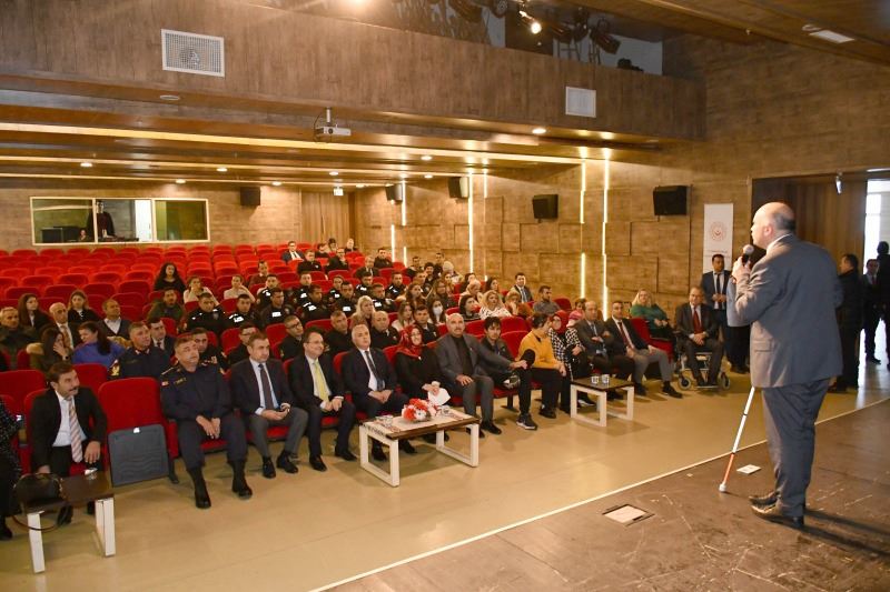 Saygı duruşu ve İstiklal Marşımızın okunması ile başlayan konferansta açılış konuşması Aile ve Sosyal Politikalar İl Müdürü Ülkü Uslu tarafından yapıldı. Daha sonra konferans Eğitimci Yazar Halis Kuralay tarafından ‘Umudunuz Ufkunuz Olsun’ konulu konuşması ile devam etti. Yazar Kuralay, yaşanmış olaylardan örnekler vererek engelli vatandaşlarımızın hayatını kolaylaştırmak için yapılması gerekenler hakkında katılımcıları bilgilendirdi.