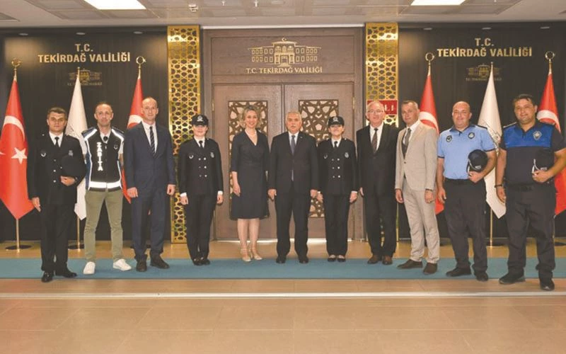 Tekirdağ Büyükşehir Belediyesi Zabıta Daire Başkan Vekili Pınar Gülmez ve Büyükşehir Belediye Zabıta Personeli, Süleymanpaşa Belediyesi Zabıta Müdür Vekili Turgut Ünsal ve Belediye Zabıta Personeli, Zabıta Teşkilatı’nın kuruluşunun 196. yıl dönümü ve Zabıta Haftası nedeniyle Vali Aziz Yıldırım’ı makamında ziyaret etti.