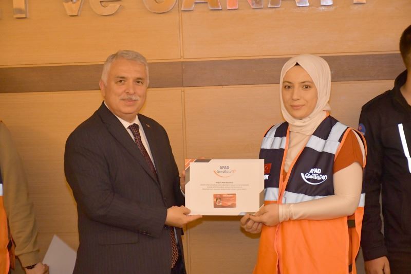 Ardından AFAD İl Müdürü Recep Erol bir konuşma yaptı. Müdür Erol’un konuşmasının ardından “Unutma” isimli video izlendi. Ardından İl Gönüllü Lideri Destek AFAD Gönüllüsü Veli Şimşek bir konuşma yaptı. Veli Şimşek’in konuşmasının ardından Destek AFAD Gönüllüleri ile ilgili video izlendi. Ardından Sertifika ve Kimlikler, Vali Aziz Yıldırım ve protokol üyeleri tarafından verildi. Sonrasında 2021 Afet Eğitim Yılı Performans Yarışmasında derece elde edenlere ödülleri, Vali Yıldırım tarafından verildi.