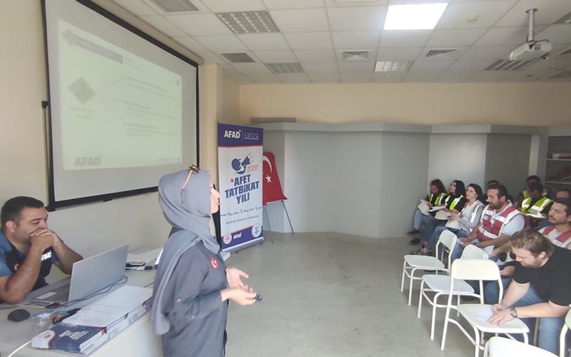 Eğitim sonrasında deprem anı ve tahliye tatbikatı gerçekleştirildi.
