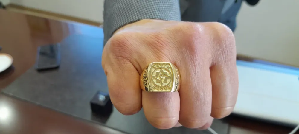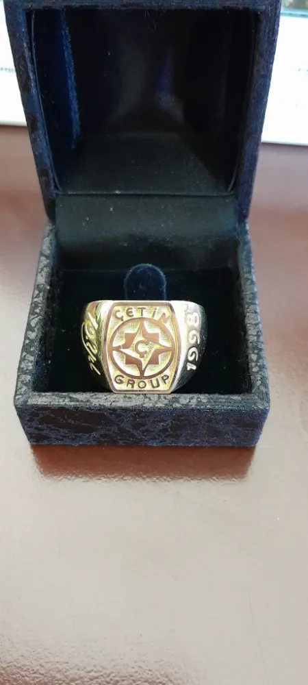 Çetin Group Yönetim Kurulu Başkanı Ahmet Çetin’de eski günleri hatırlatan pasta sürprizinin ardından Çetin Group Proje Müdürü Cenk Kıratlı’ya şirkette 15 yılını dolduran yöneticilere bizzat kendi eliyle hediye ettiği Çetin Group Mührü taşıyan altın yüzüğü taktı. Ahmet Çetin, “Çetin Group’un nişanesi olan bu yüzüğü sana takmaktan son derece mutluyum.”darken, Cenk Kıratlı’da teşekkür etti.