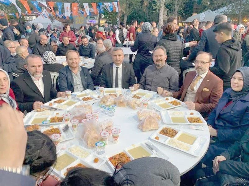 Cumhuriyet Meydanında düzenlenen 5 bin kişilik iftar yemeğinde boş sandalye kalmadı. İftara gelen vatandaşlar, meydanı hınca hınç doldurdu. İftarın ardından açıklama yapan AK Parti İlçe Başkanı Mustafa Keskin, “Mübarek Ramazan ayının son günlerini yaşıyoruz. Vatandaşlarımızla, hemşehrilerimizle olmaktan mutluluk duyuyoruz. Özlediğimiz gönül sofralarında halkımızla bir araya gelmenin sevincini yaşıyoruz. Hayat paylaşınca güzeldir” diye konuştu.