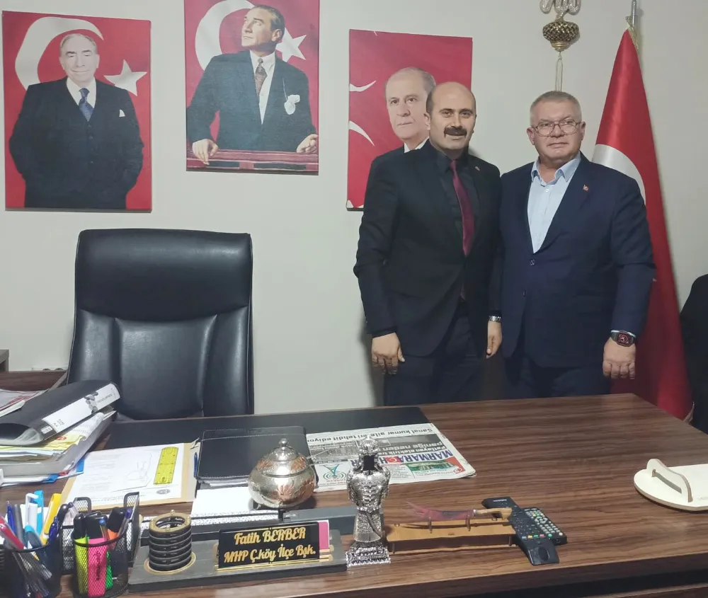 AK Parti Çerkezköy Belediye Başkan A. Adayı Dr. Ali Çolak, MHP İlçe Başkanı Fatih Berber’i ziyaret etti. Kalabalık bir ekiple MHP’yi ziyaret eden Dr. Ali Çolak’ı MHP İlçe Başkanı Fatih Berber, yönetim kurulu üyeleriyle birlikte misafir etti. Cumhur İttifakı’nın ortağı olan MHP’yi ziyaret eden Dr. Ali Çolak, misafirperverliklerinden ötürü İlçe Başkanı Fatih Berber ve yönetimine teşekkür etti.