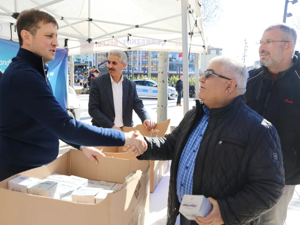 Çerkezköy Belediye Başkanı Vahap Akay Miraç Kandili’nde kandil simidi dağıttı.