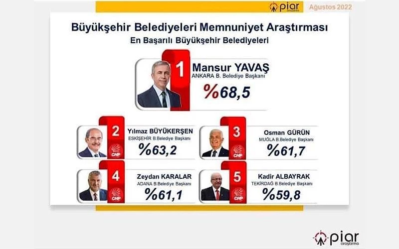 Tekirdağ Büyükşehir Belediye Başkanı Kadir Albayrak, PİAR Araştırma Şirketi’nin araştırma sonuçlarına göre Türkiye’de En Başarılı Büyükşehir Belediye Başkanları arasında Ankara Büyükşehir Belediye Başkanı Mansur Yavaş, Eskişehir Büyükşehir Belediye Başkanı Yılmaz Büyükerşen gibi büyükşehir başkanları ile birlikte ilk 5 içerisinde yer aldı.