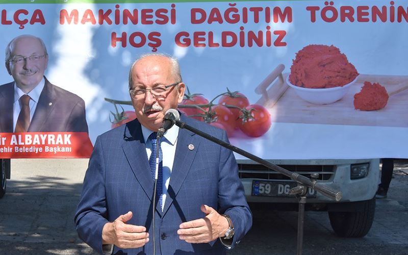 Tekirdağ Büyükşehir Belediye Başkanı Kadir Albayrak, Salça makinası dağıtma programına katıldı.