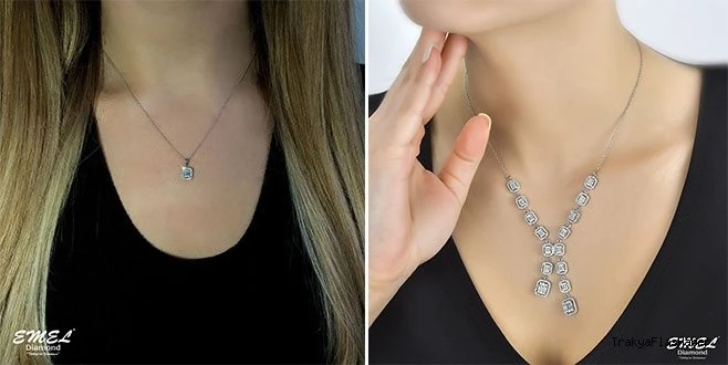 Emel Pırlanta, pırlantaların kesim şekilleri ve diğer özellikleri ile takıların farklı görünüm sağlıyor.