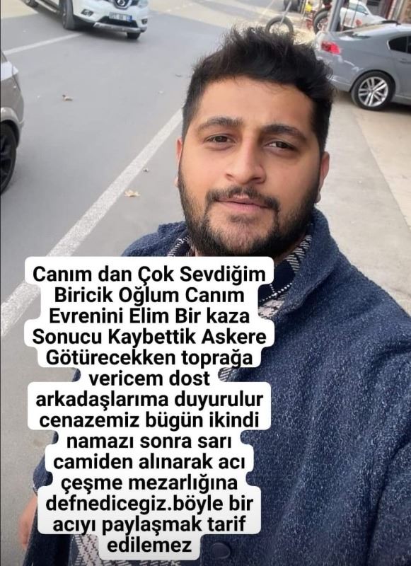 Edinilen bilgiye göre, Edirne’den Lalapaşa istikametine seyir halinde olan Y.G. idaresindeki 34 RB 2714 plakalı otomobil, Hamzabeyli Sınır Kapısı’ndan şehir merkezine giden H.G. yönetimindeki 68 DL 290 plakalı tırla çarpıştı. Çevredekilerin durumu bildirmesi üzerine bölgeye sağlık, polis ve jandarma ekipleri sevk edildi. Olay yerine gelen sağlık ekiplerinin ilk tespitinde otomobilde yolcu olarak bulunan ve askere gitme hazırlığında olan Evren Urtekin’in hayatını kaybettiği belirlendi.