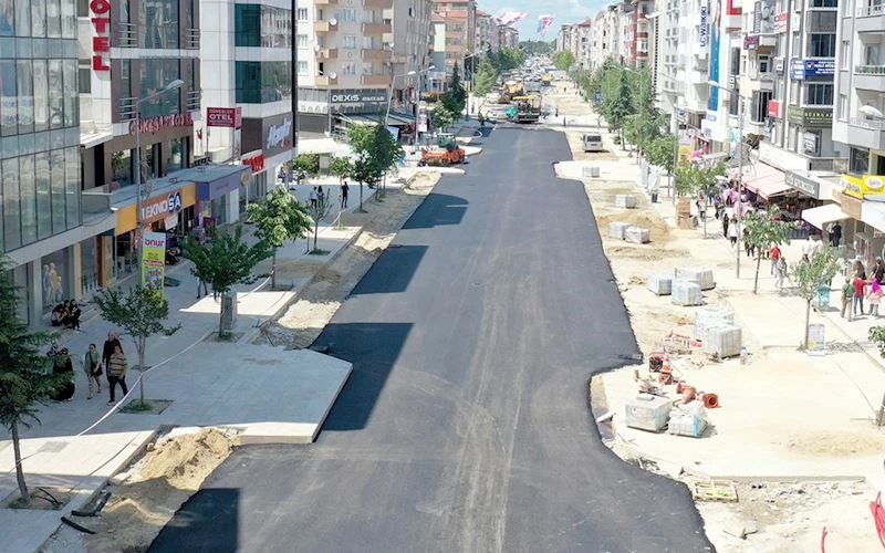 Sıcak asfalt çalışmasının devam ettiği Atatürk Caddesi’ndeki kaldırım ve bisiklet yolu yapım çalışmalarının da devam ettiğini kaydeden Belediye Başkanı Vahap Akay, “Bir yandan kaldırım ve peyzaj düzenleme çalışmalarımız devam ederken diğer yandan da Cumhuriyet Meydanı Projemiz hızlı bir şekilde devam ediyor. Cumhuriyet Meydanı Projemiz kapsamında betonarme yol ve kaldırım imalatlarımızın tamamlanmasının ardından Cumhuriyet Meydanımızda 9 bin metrekare alanı doğal taş mermer ile kaplayacağız” ifadelerini kullandı.