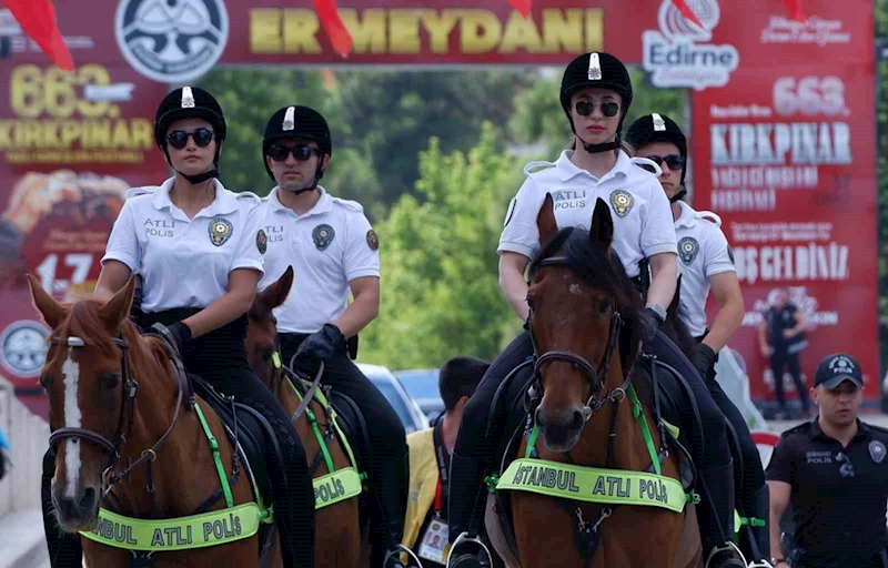 İstanbul Çevik Kuvvet Şube Müdürlüğüne bağlı olarak görev yapan Atlı Polis Grup Amirliğinde çeşitli eğitimlerden geçen 4 polis memuru, 4 atla Kırkpınar Yağlı Güreşleri’nin gerçekleştirildiği Sarayiçi Er Meydanı çevresinde devriye görevi yürütüyor. Halkın yoğun olduğu yerlerde huzur ve güveni tesis eden ekipler, vatandaşlardan da yoğun ilgi görüyor.