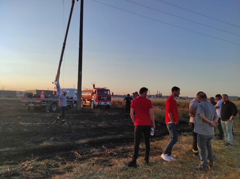 Organize Sanayi Bölgesi yakınlarında bulunan tarladaki yangına müdahale edilmek için önce elektrikler kesildi, ardından tarlanın hemen altından geçen doğalgaz hattı kapatıldı. İtfaiye ekiplerinin bir saat boyunca müdahale ettiği yangında 100 dönümlük arazinin 60 dönümünden fazlası alevlere teslim oldu. Yaklaşık 70 ton mahsulün kül olduğu olayda zorlu hava ve arazi şartlarından dolayı motoru ısınarak arızalanan itfaiye aracına bir başka arozözün hava kompresiyle müdahale edildi.