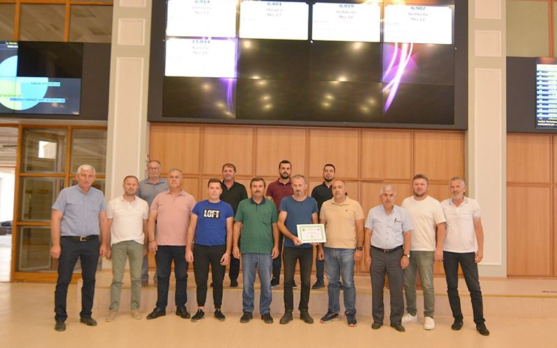 Meclis Başkanı Fedai Canım ile ETB üyelerinin katılımı ile gerçekleştirilen salon satışı neticesinde Edirne’ye bağlı Kemalköy’den Ömer Göktaş’a ait 2 ton ayçiçeği, ETB Meclis Üyesi Oğuz Kurban tarafından kilogramı 13 liradan satın alındı. ETB Meclis Başkanı Fedai Canım, üretici Ömer Göktaş’ı kutlayarak, günün anısına 100 litre mazot ile plaket hediye etti.