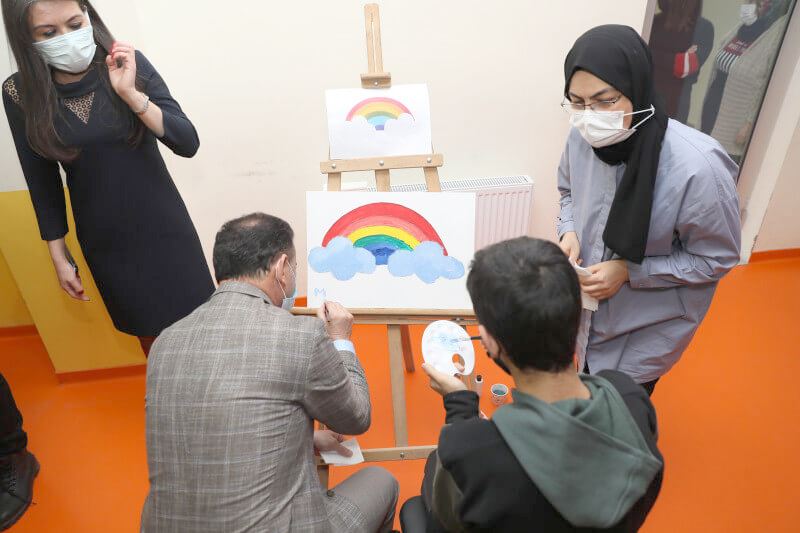 Konuşmaların ardından Kapaklı Özel Eğitim Uygulama Okulu öğrencileri ile davetliler çok amaçlı salonda birlikte resim yaptılar. Aynı tuvalde boyama yapan özel gereksinimli öğrenciler Kapaklı Kaymakamı Bayram Sağır ve Kapaklı Belediye Başkanı Mustafa Çetin ile hatıra fotoğrafı çektirdiler.