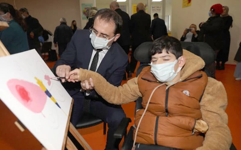 3 Aralık Dünya Engelliler Günü nedeniyle Kapaklı Özel Eğitim Uygulama Okulu’nda düzenlenen programda özel öğrenciler ve davetliler aynı tuvalde resim yaptılar.
