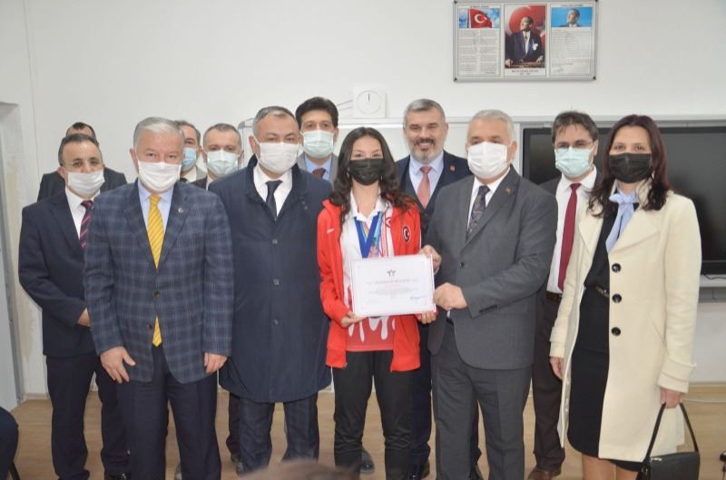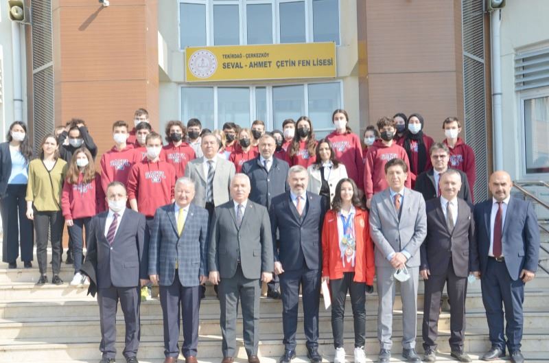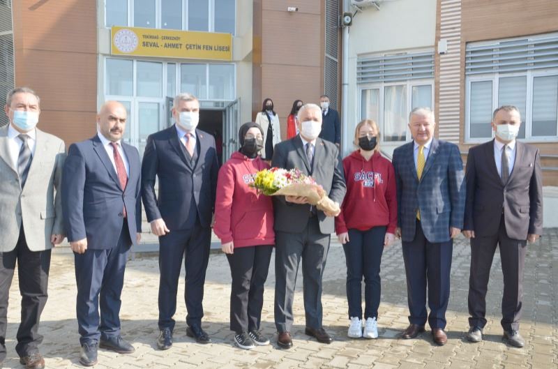 Hayırlı olsun temennisiyle müzik sınıfının açılış kurdelasını kesen Tekirdağ Valisi Aziz Yıldırım, daha sonra geçtiğimiz günlerde üst üste başarılar kazanan Seval Ahmet Çetin Fen Lisesi öğrencisi aynı zamanda milli sporcumuz Sudenaz Kaya’ya da teşekkür belgesi verdi. Vali Yıldırım ayrıca hayırsever Seval Çetin’in yaptırdığı müzik sınıfı nedeniyle Tekirdağ Valiliği olarak teşekkür plaketi verdi.